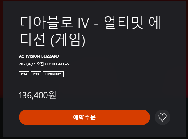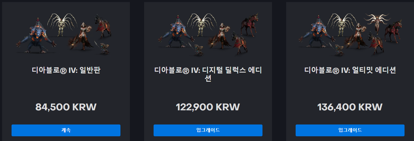 디아블로는 다양한 플랫폼에서 게임을 할수가 있으며, 일반판 디지털딜럭스 에디션 그리고 얼티밋에디션으로 나뉘어져서 구입이 가능하다고 합니다